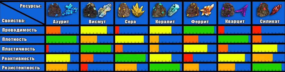 Феррит (Ferrite) является гибридом кристита с высокой проводимостью, используется в качестве материала для производства и процессов переработки. Добывается также, как и остальные ресурсы. | |